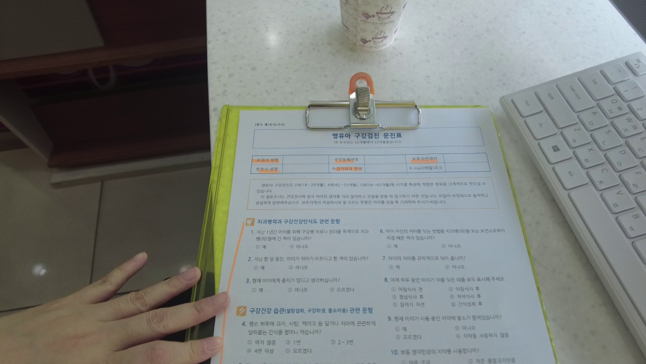 영유아구강검진표를 문진표도 바로 작성할 수 있어 좋았습니다.